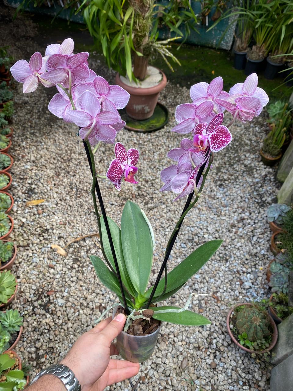 Obs: Caso tivermos planta com haste floral ou botões será o maior prazer enviar, porém também não podemos garantir que chegará intacta.